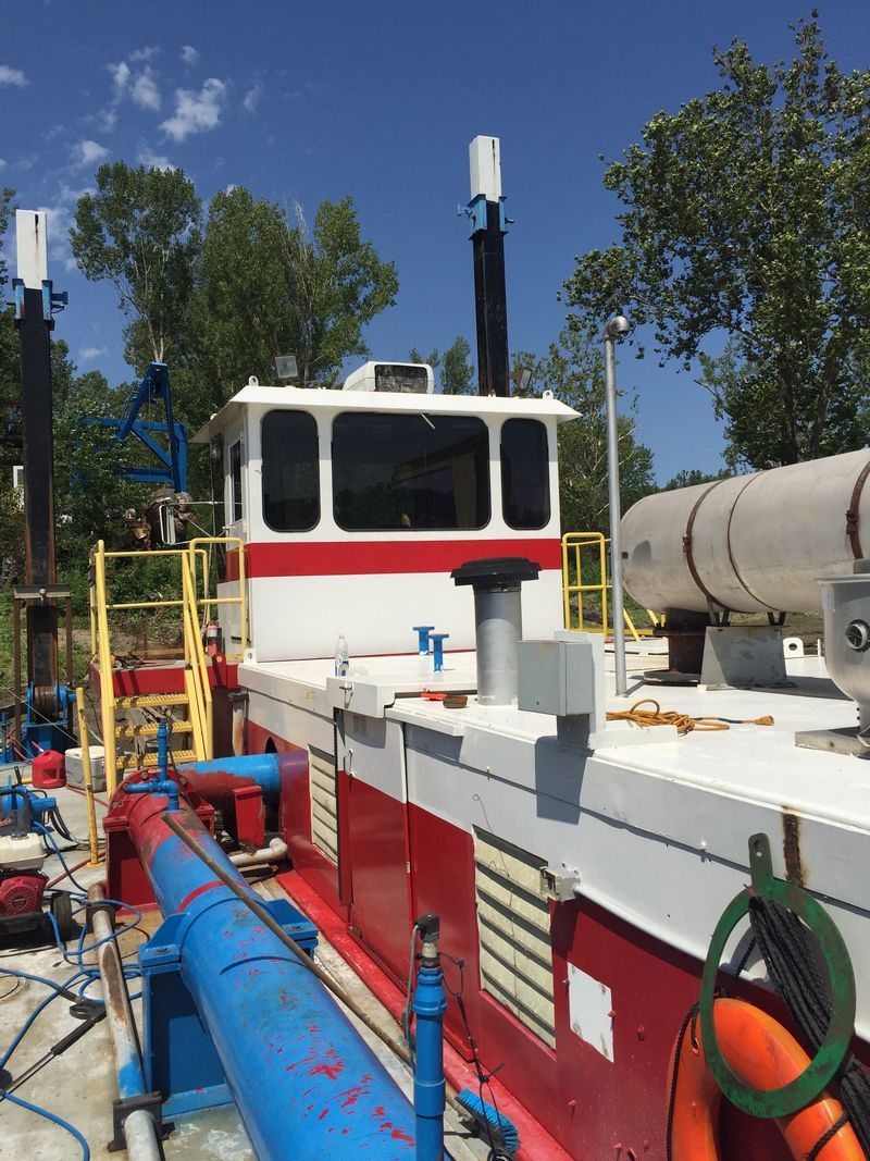 This dredge consists of a rear-center Push-Spud system, as well as a Swinging Ladder